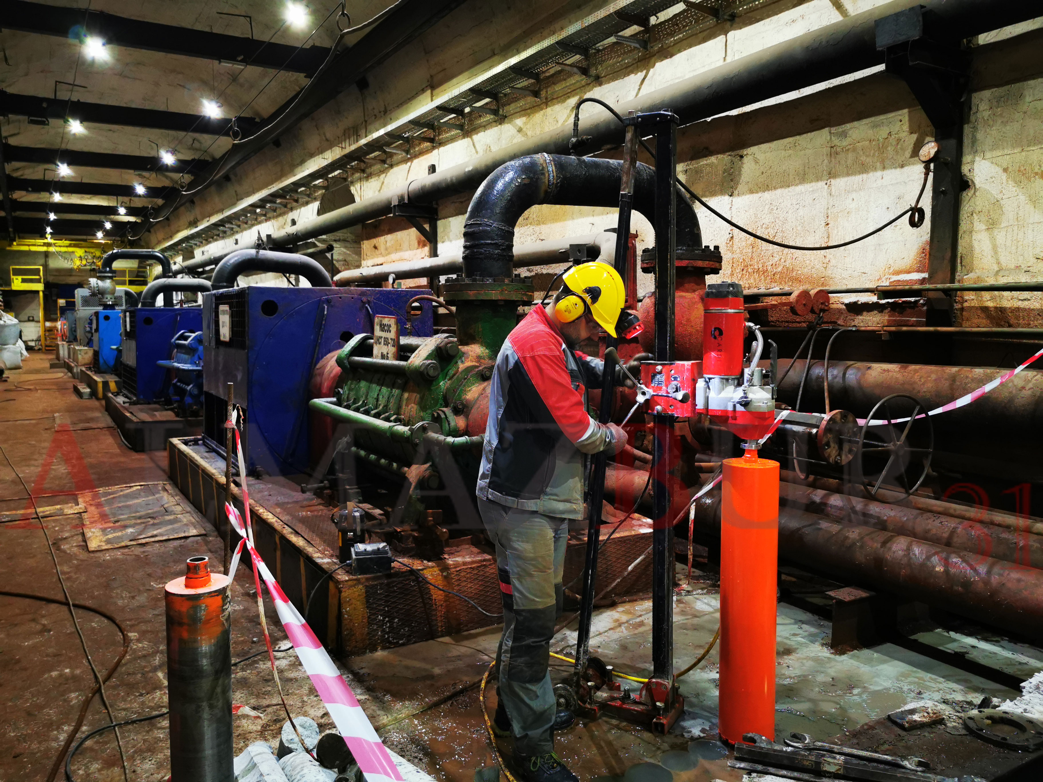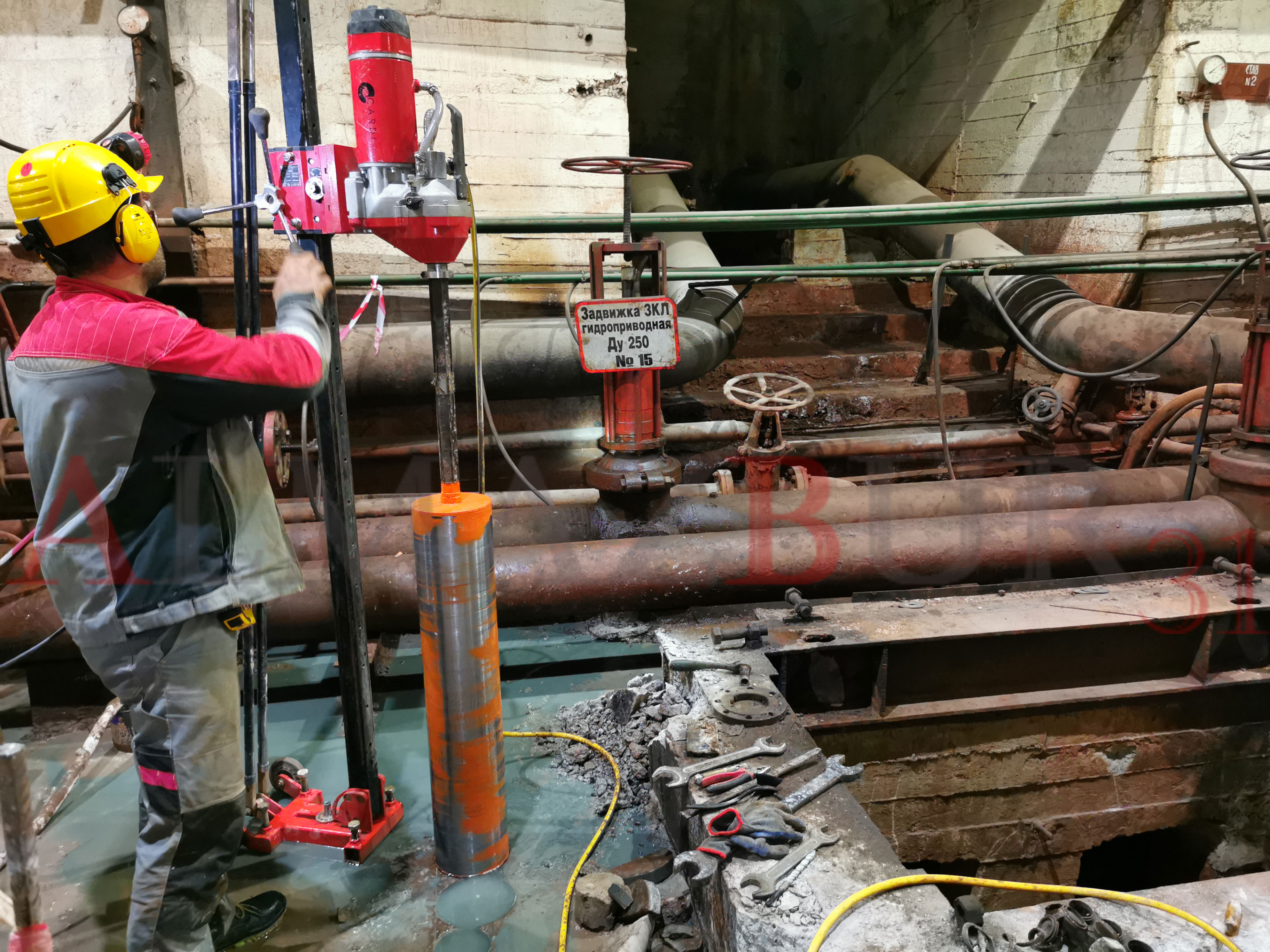 Скорость бурения железобетона установкой алмазного бурения - в среднем 2 см/мин, это позволяет выполнять отверстие под вентиляцию в железобетонной стене примерно за 10 минут.
